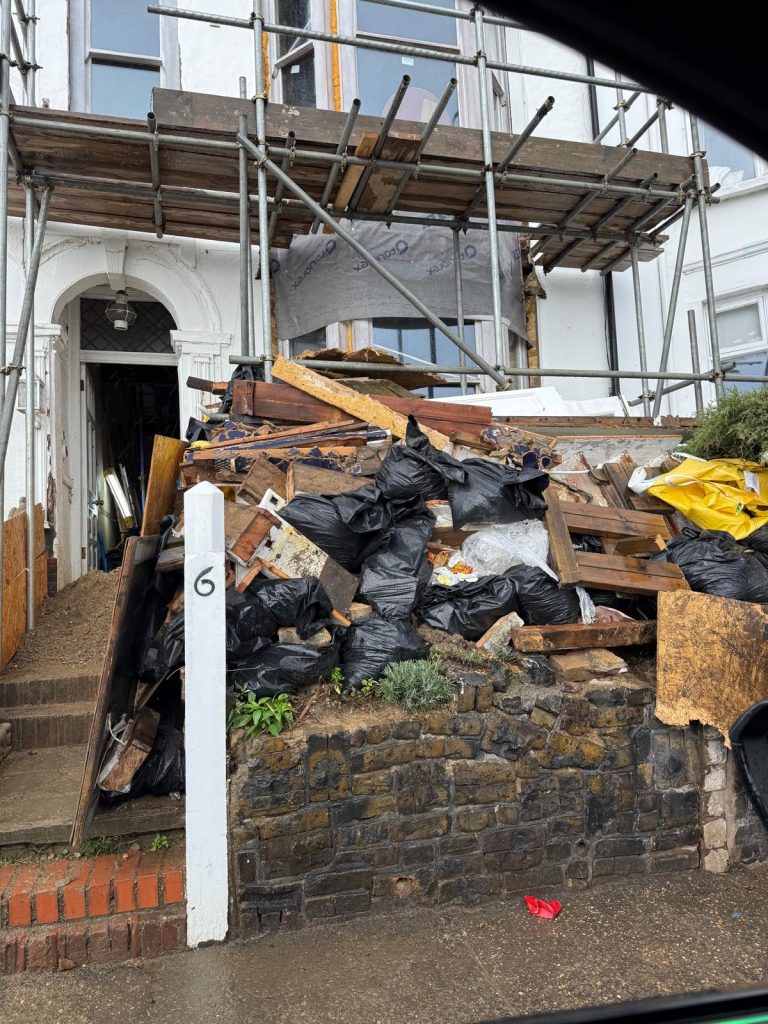 The thing to ensure when ordering a wait and load skip service it make sure you are super organised and have your waste ready to load. You can see from the photo that these builders have stored all of their waste at the front of the property ready for the skip lorry to arrive and load the waste into.